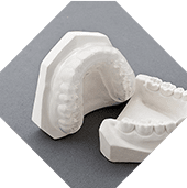 そのトレーと特殊な材料を用いて精密なお口の型を取り、噛み合わせの検査を行います。これらのデータをコンピュータに取り込んで噛み合わせや顎の動きをシミュレーションし、そのデータを元に義歯を作製していきます。義歯が出来上がったら、噛み合わせや顎の動きに合わせて調整を行い、治療は完了となります。